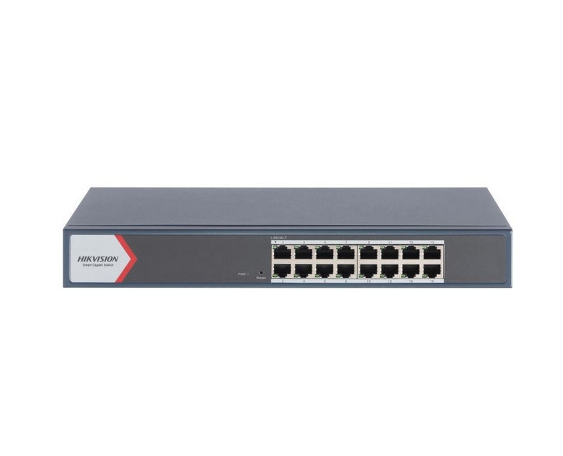HikVision 16 Port Gigabit Smart Switch, 16 x Gigabit RJ45 port, Link aggregation, switching capacity 56 Gbps, 6 kV Surge Protection